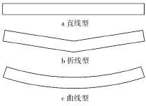 影響垂直螺旋輸送機性能的操作變量有螺旋轉(zhuǎn) 速、進口速度、填充系數(shù)、螺旋葉片的形狀、顆粒的形狀等。試驗選取進口速度為 10 m/s,由文獻[5]可知,填充系數(shù)對平均顆粒速度、平均顆粒軸向速度、平均顆粒周向速度的影響很小,而本文中主要分析近軸處的 平均顆粒周向速度、近壁處的平均顆粒軸向速度,因 此可選填充系數(shù)取做一個固定參數(shù),即填充系數(shù)為 50%,忽略顆粒形狀對輸送性能的影響,因此試驗選 取了螺旋轉(zhuǎn)速、螺旋葉片作為操作參數(shù),來展開詳細 的試驗設(shè)計。 根據(jù)文獻[5]的分析,選取螺旋轉(zhuǎn)速參數(shù)分別為600、900、1 000、1 200、1 400、1 600、1 800 r/min;螺旋 葉片母線的形狀分別為直線型、折線型、曲線型,其形 狀簡圖如圖 2 所示,由排列組合知識可知,需要進行21 次試驗。